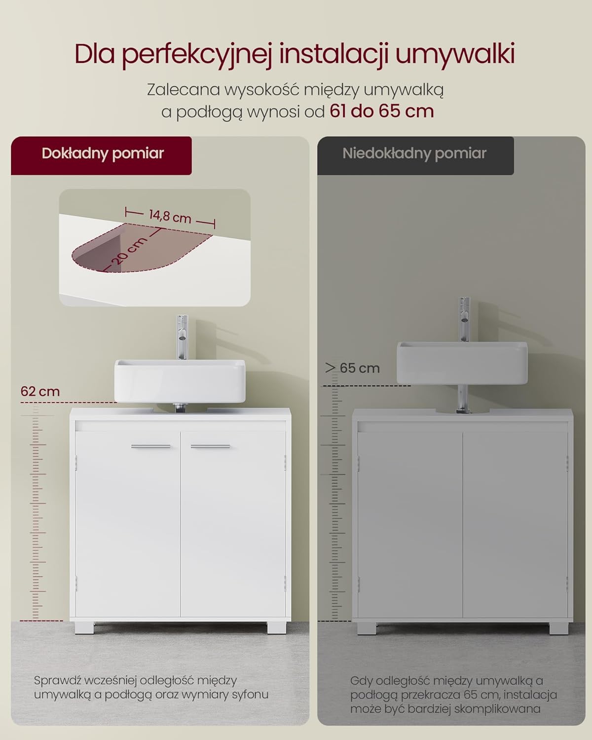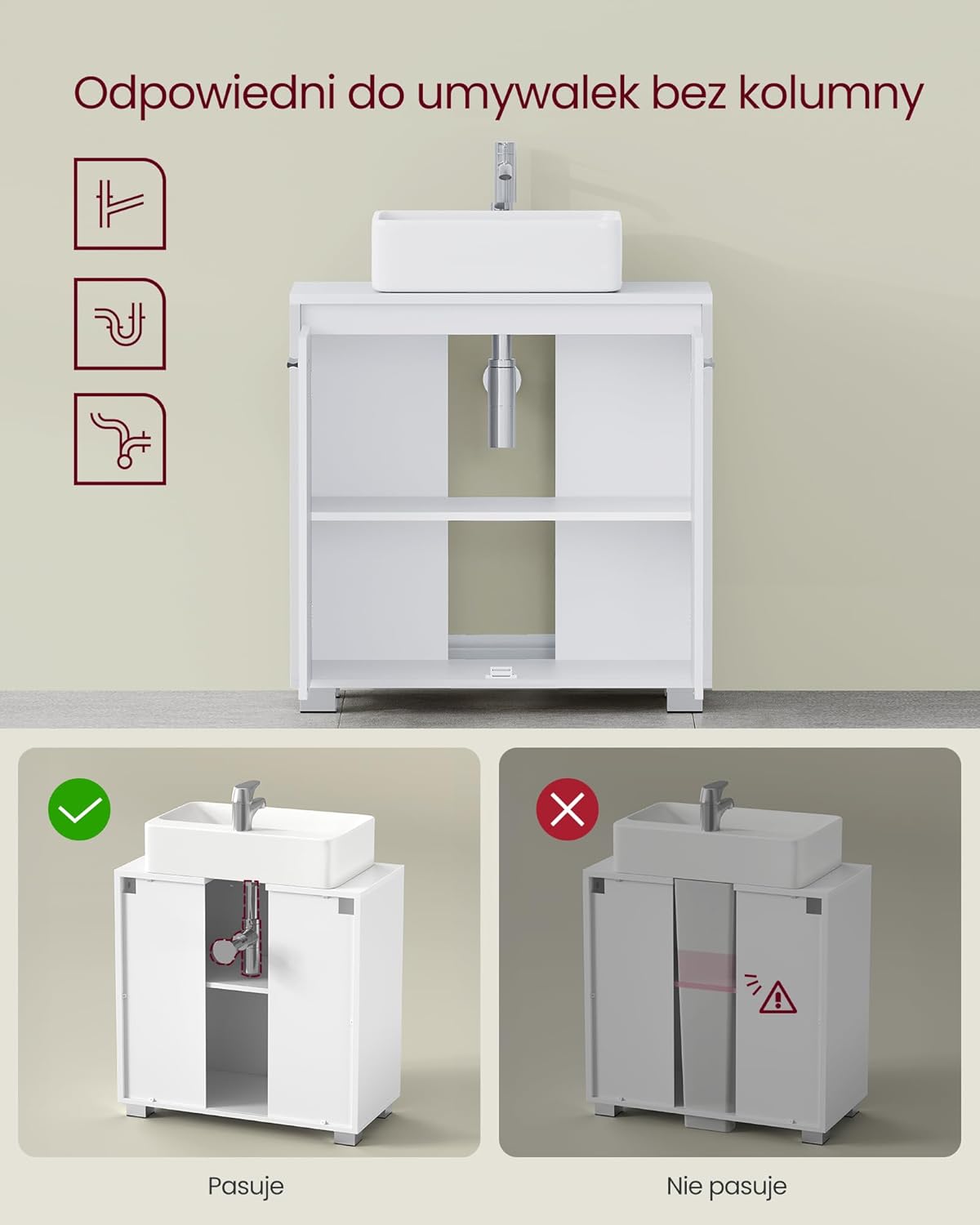 ✅ Małych i dużych łazienek – optymalne wykorzystanie przestrzeni pod umywalką.