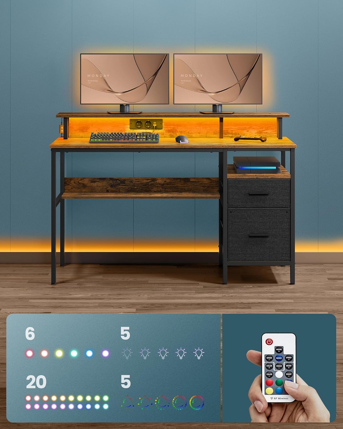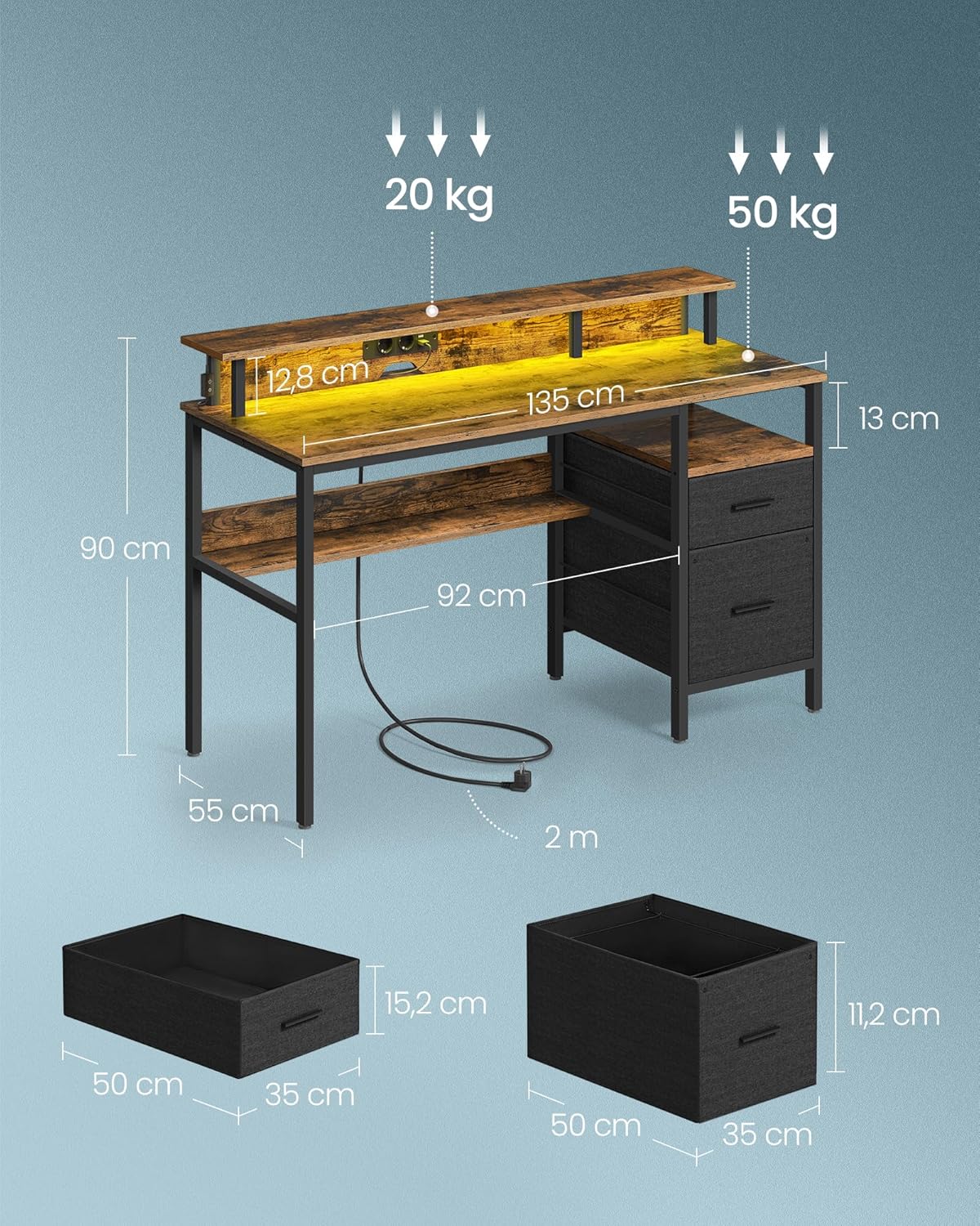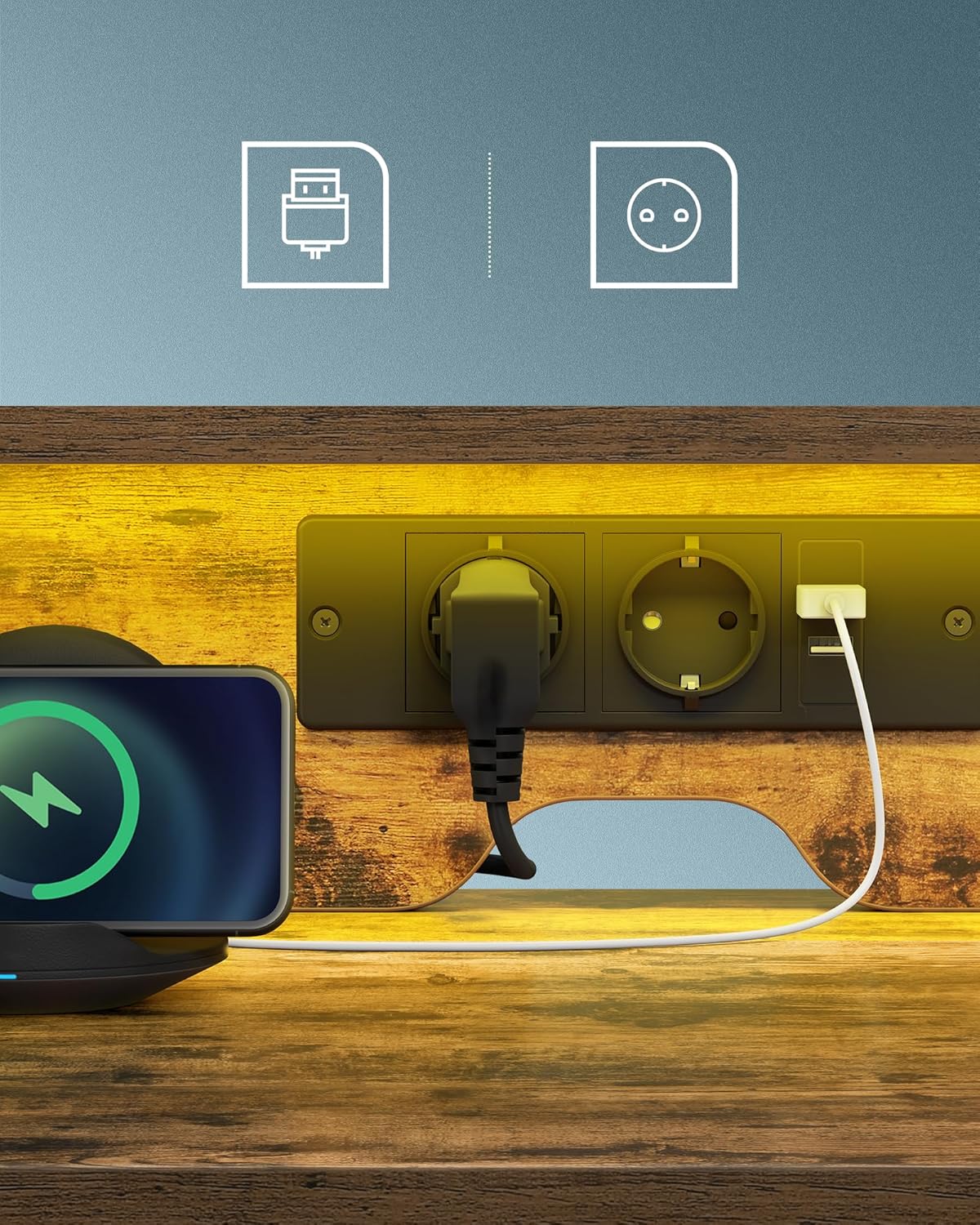 Odkryj biurko VASAGLE, które łączy w sobie styl industrialny z innowacyjnymi rozwiązaniami! To funkcjonalne biurko z oświetleniem LED i wbudowaną listwą zasilającą stworzy idealne środowisko do pracy, nauki czy gamingu.