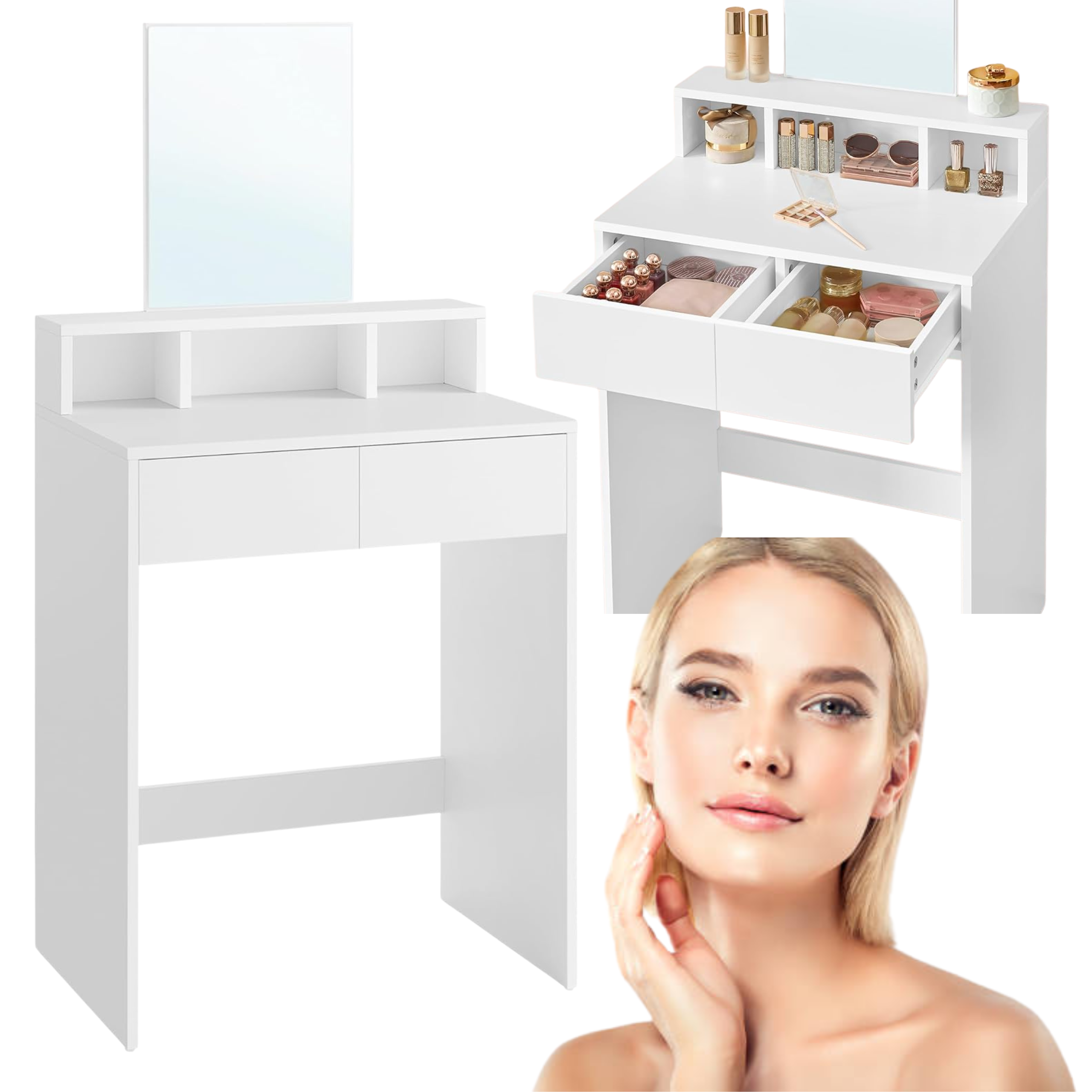 Mała Toaletka Kompaktowa z Lustrem Biurko Szuflady Półki Biała do Sypialni
