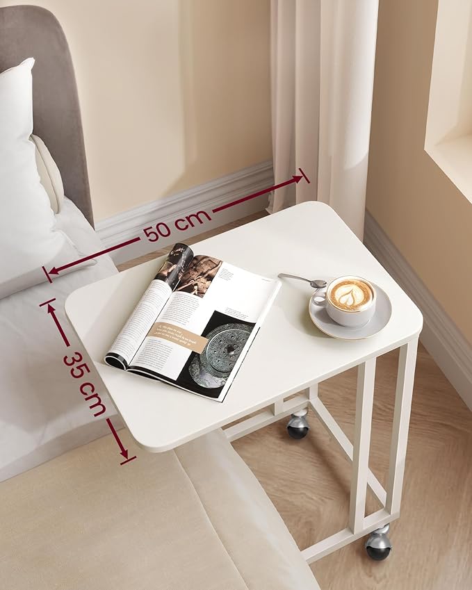 ⭐️ Śniadanie w łóżku bez wysiłku: Stolik jest wyposażony w cztery kółka, które ułatwiają wsunięcie go pod sofę lub łóżko (wymaga odstępu 7 cm), co pozwala na wygodne podawanie śniadania w łóżku lub korzystanie z laptopa w komfortowej pozycji.