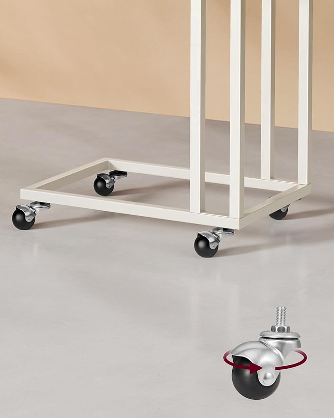 Ten mobilny stolik pomocniczy to idealne połączenie formy i funkcjonalności, które wnosi ciepło i elegancję do każdego pomieszczenia. Jego kremowo-biały blat i stabilna stalowa rama tworzą harmonijny design, który jest zarówno estetyczny, jak i niezwykle praktyczny. Wyposażony w 4 kółka dla łatwej mobilności lub 4 regulowane nóżki dla stabilności, ten stolik oferuje dużą wszechstronność i maksymalną nośność 25 kg, co czyni go niezastąpionym pomocnikiem w codziennych czynnościach.