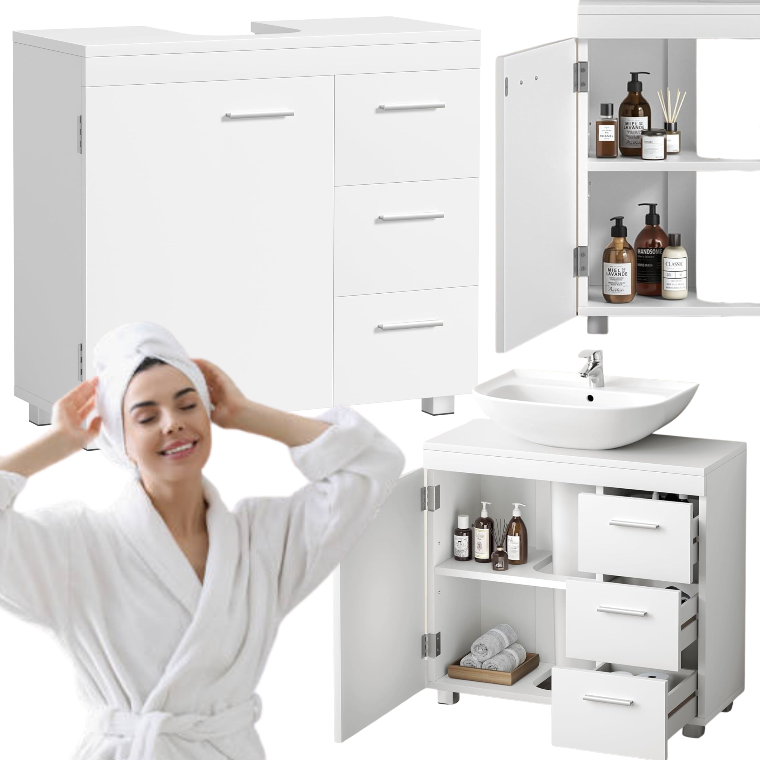 Szafka Stojąca Pod Umywalkę Łazienkowa Biała Komoda z Szufladami Półką