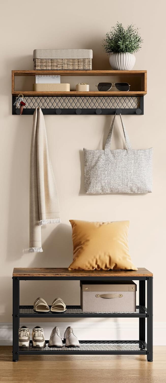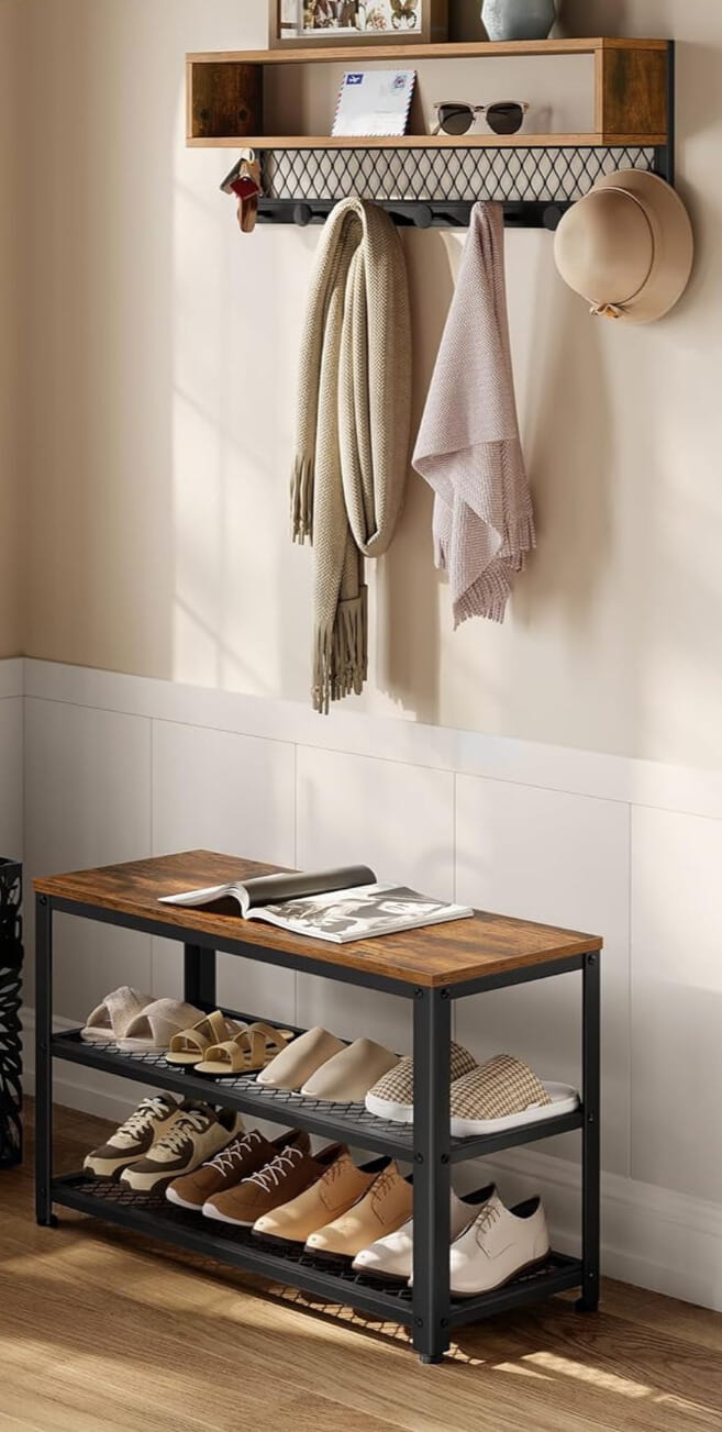 ✔ 1 × Ławka ze stojakiem na buty i wieszakiem
