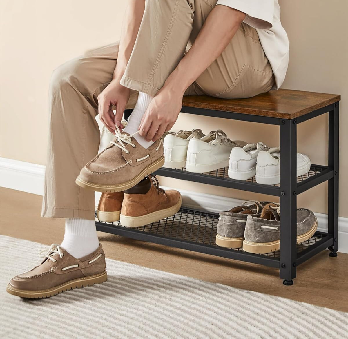 Zestaw został wykonany z wysokiej jakości materiałów – stalowa rama zapewnia stabilność, a płyta wiórowa o pięknym, naturalnym wykończeniu dodaje ciepła. Ławka wytrzymuje aż do 136 kg, co czyni ją idealnym miejscem do wygodnego zakładania butów. Regulowane nóżki zapewniają pełną stabilność – nawet na nierównej podłodze.