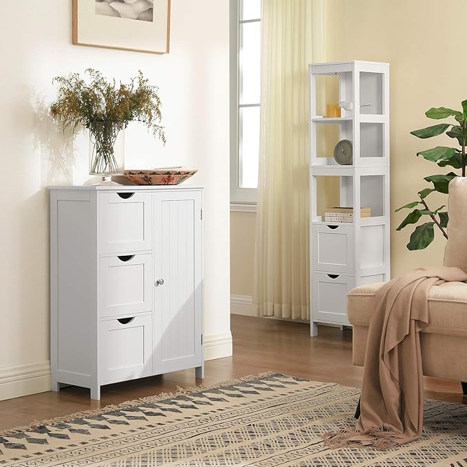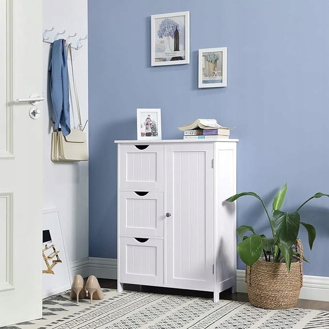 Szafka z 3 szufladami łazienkowa stojąca Regał Mała do korytarza BIAŁA