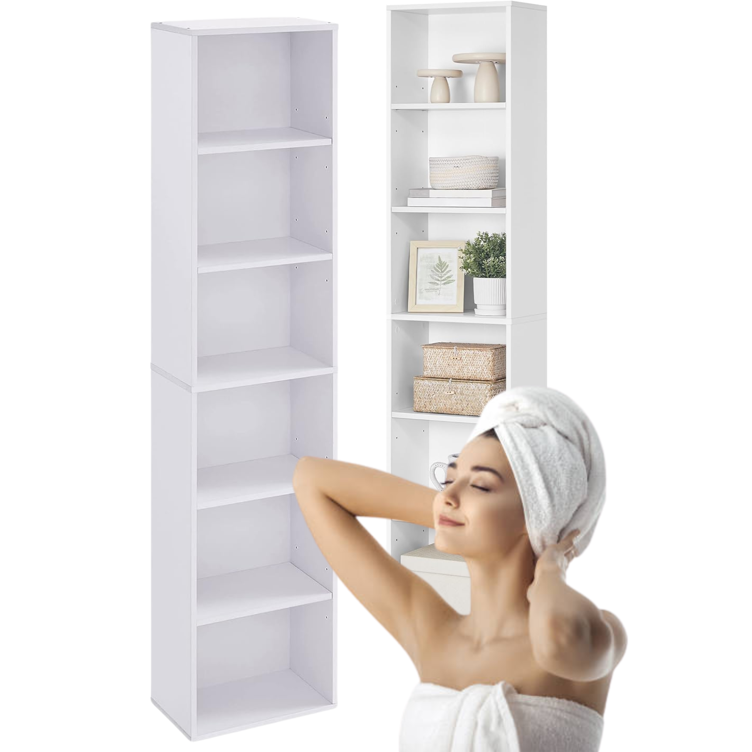 ⭐️ Mała przestrzeń, ale dużo książek? Ten wąski regał jest dla Ciebie!: O rozmiarze 40 x 24 x 178,5 cm, pozwala na wykorzystanie przestrzeni pionowej bez zajmowania dużej ilości miejsca na podłodze. Ponadto każda z sześciu półek, wykonana z płyty wiórowej, może pomieścić do 10 kg Twoich książek (jedno miejsce wskazuje 5 kg, inne 10 kg, dlatego podkreślamy wyższą wartość jako atut nośności).