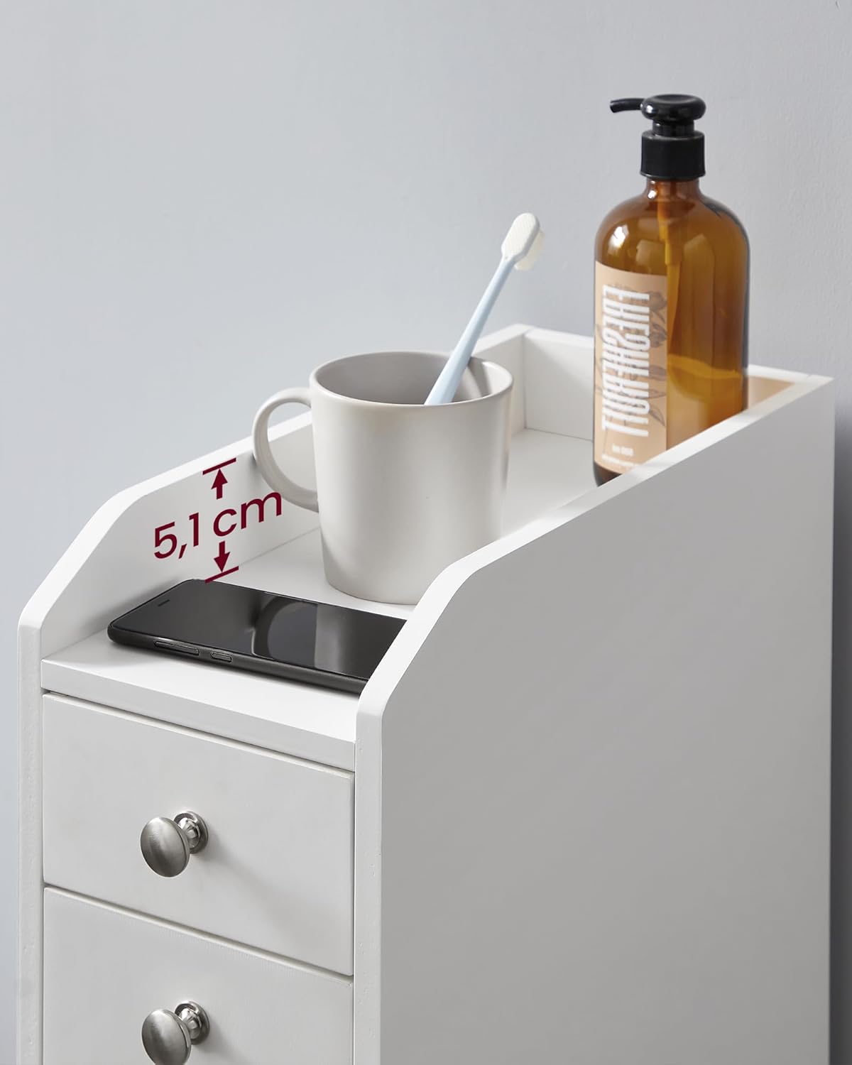 ❤️ Funkcjonalna organizacja – dolna szuflada z 2 półkami pozwala przechowywać papier toaletowy i przybory, górna szuflada idealnie nadaje się na drobne przedmioty, a górna półka jest świetnym miejscem na telefon lub drobne akcesoria.