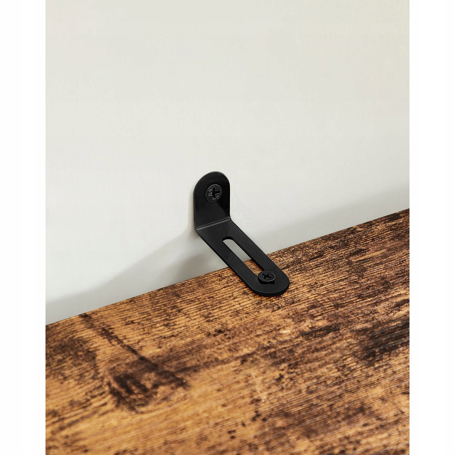 Industrialny charakter regału podkreśla stalowa, czarna rama w połączeniu z ciepłym, drewnopodobnym wykończeniem w kolorze vintage brąz. Taki duet sprawia, że regał doskonale wpisuje się w różne style wnętrz – od nowoczesnych loftów, przez minimalistyczne aranżacje, aż po boho i styl rustykalny.